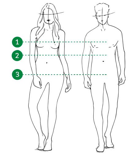 Unsere Grafiken zeigen Ihnen auf einen Blick, wie Sie am besten Maß nehmen, um Ihre richtige Größe in den Maßtabellen zu finden – individuell abgestimmt.