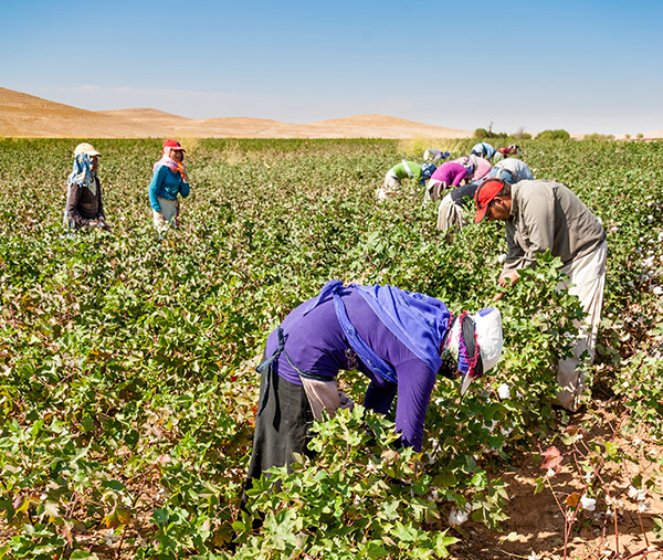 Baumwollpflücker bei der Ernte in Sanliurfa, Türkei